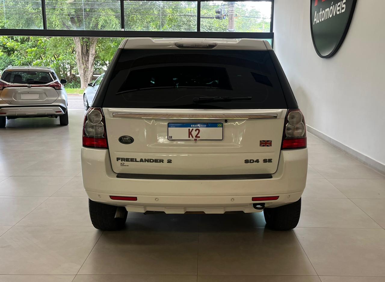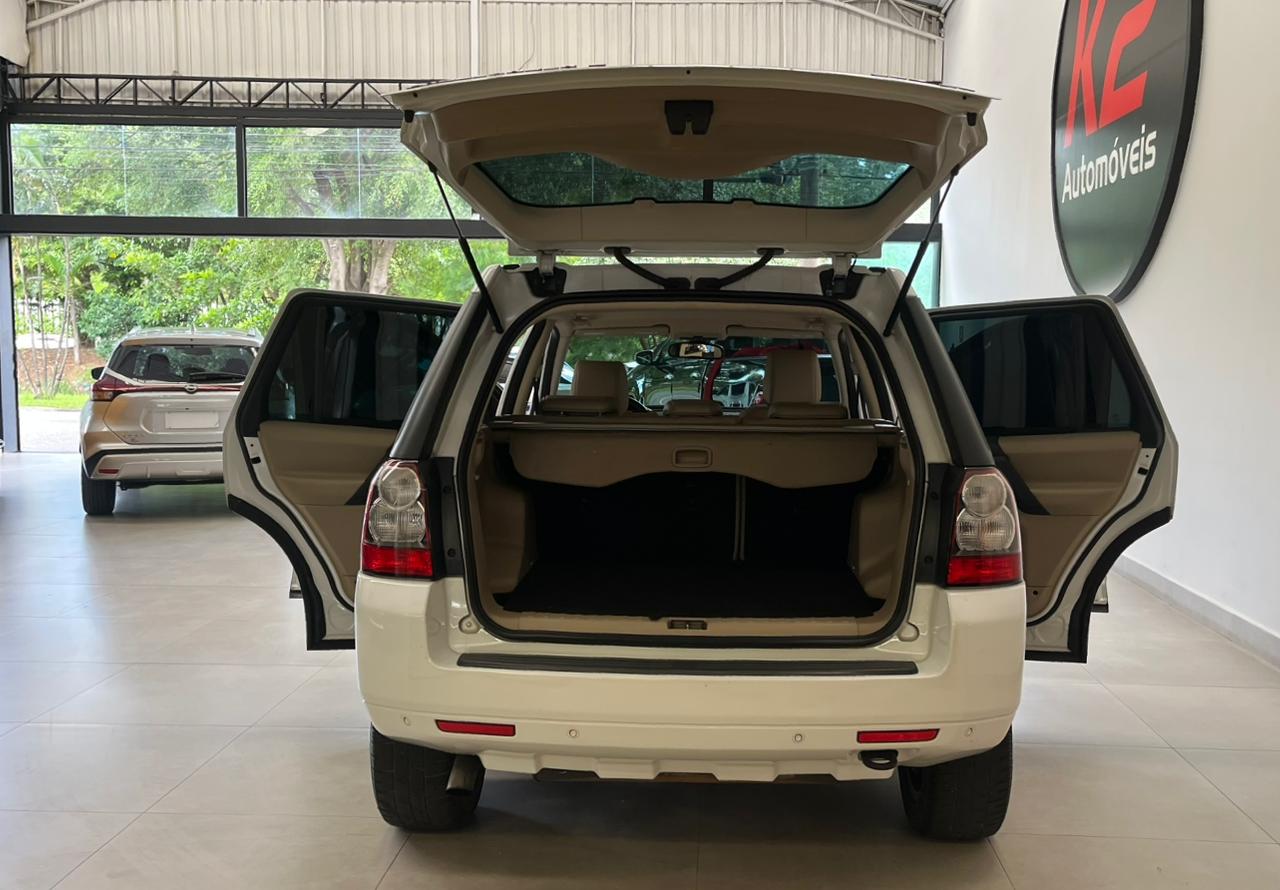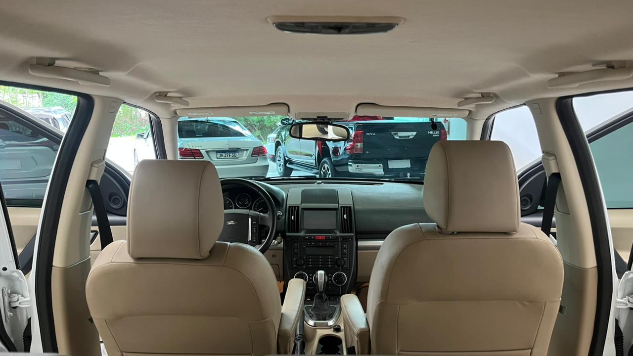 K2 AUTOMOVEIS ▃▃▃▃▃▃▃▃▃▃▃▃▃▃▃ FREELANDER 2 SE 2.2 SD4 AUT ▃▃▃▃▃▃▃▃▃▃▃▃▃▃▃▃ Motor e Desempenho Motor: 2.2 Turbodiesel (Duratorq SD4), 4 cilindros em linha. Potência Máxima: 190 cv a 4.000 rpm. Torque Máximo: 42,8 kgfm a 1.750 rpm. Câmbio: Automático de 6 marchas com modo manual. Tração: Integral 4x4 (AWD) sob demanda com sistema Terrain Response. Aceleração (0-100 km/h): 9,5 segundos. Velocidade Máxima: 190 km/h. Consumo e Autonomia Urbano: Aproximadamente 9,5 a 11,5 km/l. Rodoviário: Aproximadamente 13 a 14,3 km/l. Tanque de Combustível: 68 litros. Autonomia: Pode chegar a cerca de 970 km em condições ideais de estrada. Dimensões e Capacidades Comprimento: 4.500 mm. Largura: 2.005 mm. Altura: 1.740 mm. Porta-malas: 750 litros (até o teto) ou 405 litros até a cobertura. Peso em ordem de marcha: Cerca de 1.880 kg K2 AUTOMOVEIS ▃▃▃▃▃▃▃▃▃▃▃▃▃▃▃ ▃▃▃▃▃▃▃▃▃▃▃▃▃▃▃▃